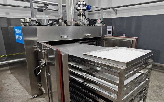 此次共投入810公斤銀板,經(jīng)過溶銀、除雜、中和、結(jié)晶、烘干等一系列流程后,一盤盤雪白的、亮晶晶的成品展現(xiàn)在大家眼前。