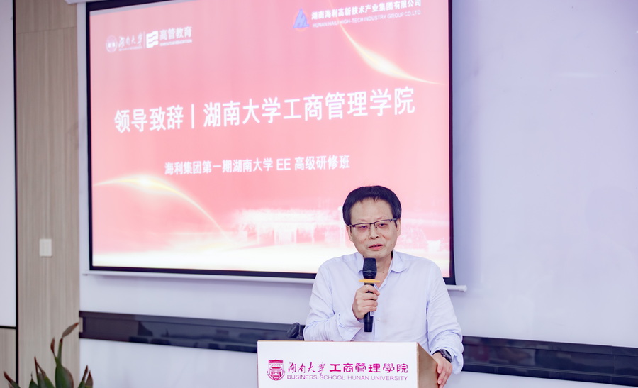 開(kāi)班儀式上,楊智代表湖南大學(xué)工商管理學(xué)院致歡迎辭,對(duì)海利集團(tuán)培訓(xùn)班的順利開(kāi)班表示衷心地祝賀。他指出,海利集團(tuán)作為湖南首家上市公司,位列中國(guó)化工500強(qiáng)和農(nóng)藥行業(yè)百?gòu)?qiáng),此次開(kāi)班正是對(duì)改革創(chuàng)新精神與實(shí)戰(zhàn)能力的生動(dòng)踐行。學(xué)院高度重視本次培訓(xùn)班,EE中心項(xiàng)目團(tuán)隊(duì)與集團(tuán)緊密協(xié)作,通過(guò)深入調(diào)研,全面掌握行業(yè)發(fā)展動(dòng)態(tài)、企業(yè)經(jīng)營(yíng)現(xiàn)狀及人才梯隊(duì)建設(shè)需求,梳理出集團(tuán)當(dāng)前亟待解決的6大核心問(wèn)題。在課程體系設(shè)置上,結(jié)合人工智能發(fā)展趨勢(shì),融入博弈思維、AI技術(shù)應(yīng)用、數(shù)字化與智能化轉(zhuǎn)型等前沿內(nèi)容,確保符合集團(tuán)戰(zhàn)略轉(zhuǎn)型升級(jí)需要。在培訓(xùn)形式上,從過(guò)去傳統(tǒng)的老師授課模式轉(zhuǎn)化為老師帶領(lǐng)學(xué)員共同思考解決企業(yè)問(wèn)題的互動(dòng)模式。同時(shí),還增加了課題研究環(huán)節(jié),學(xué)院為課題組提供專業(yè)指導(dǎo),通過(guò)對(duì)標(biāo)標(biāo)桿企業(yè)、專題研討和頭腦風(fēng)暴等方式,探討形成高質(zhì)量的課題解決方案,助推企業(yè)高質(zhì)量發(fā)展。