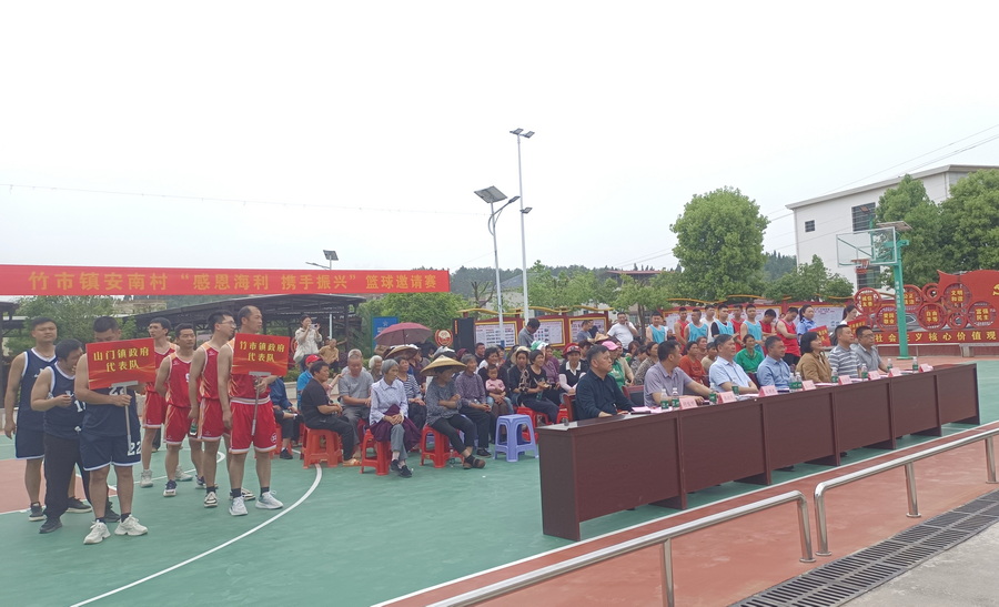 會后,集團考核組一行出席了竹市鎮(zhèn)安南村“感恩海利 攜手振興”籃球邀請賽開幕式。