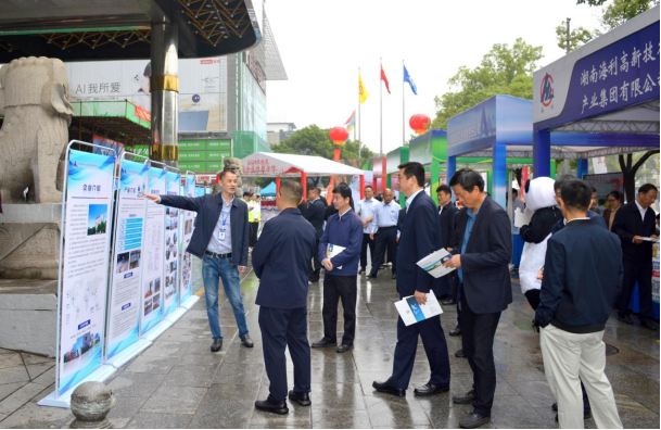 活動(dòng)在斜風(fēng)細(xì)雨中如期盛大啟幕。主舞臺(tái)和湖南海利集團(tuán)、湖南國(guó)儲(chǔ)實(shí)業(yè)公司等五家單位各具特色的展區(qū)為雨中的長(zhǎng)沙秋色平添一抹靚麗風(fēng)景。