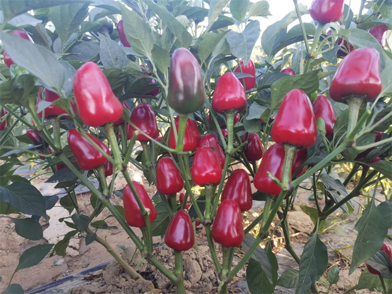 該品種為國家辣椒新品種技術研究推廣中心、湖南省蔬菜研究所新育成的單生朝天椒品種,首花節(jié)位9節(jié)左右,株高59厘米左右,株幅68厘米左右。果長3.5厘米左右,果寬3.3厘米左右,果肉厚0.18厘米左右,單果重15克左右。果實綠色轉紅色,辣味較強,適宜干制加工。