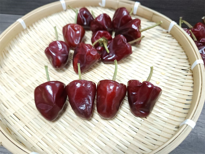 該品種為國家辣椒新品種技術(shù)研究推廣中心、湖南省蔬菜研究所新育成的單生朝天椒品種,首花節(jié)位9節(jié)左右,株高59厘米左右,株幅68厘米左右。果長3.5厘米左右,果寬3.3厘米左右,果肉厚0.18厘米左右,單果重15克左右。果實(shí)綠色轉(zhuǎn)紅色,辣味較強(qiáng),適宜干制加工。