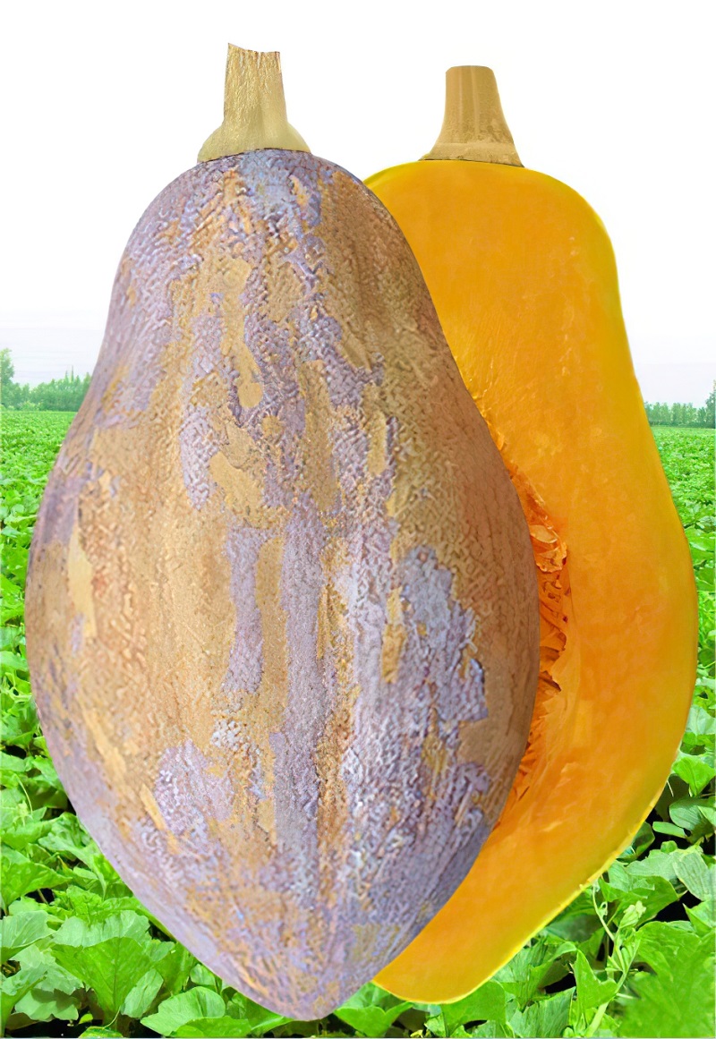 該品種為湖南省蔬菜研究所新育成的香芋南瓜品種,植株生長勢中等,橄欖形,果表光滑,成熟果紅色,上被臘粉,單果重1.5公斤左右,口感粉甜細膩,香芋味濃,耐貯運。金香芋果實能正常轉(zhuǎn)色,貯藏期延長。