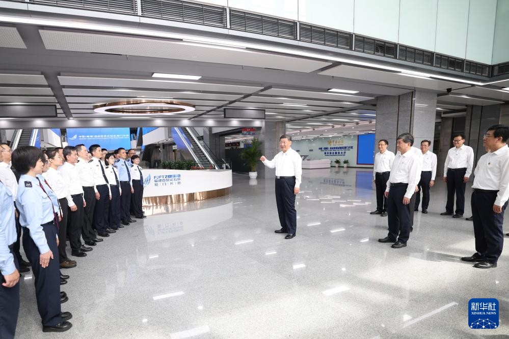 10月15日至16日,中共中央總書記、國家主席、中央軍委主席習(xí)近平在福建考察。這是16日上午,習(xí)近平在中國(福建)自由貿(mào)易試驗區(qū)廈門片區(qū)考察時,同綜合服務(wù)大廳現(xiàn)場工作人員親切交流。新華社記者鞠鵬攝