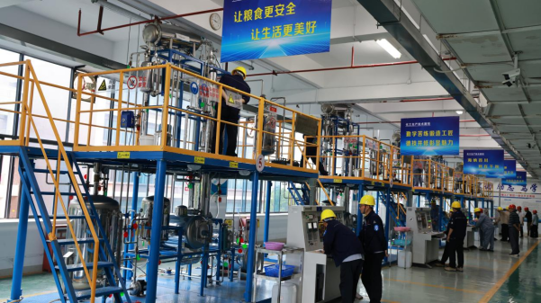競賽立足生產(chǎn)、突出實戰(zhàn),嚴(yán)把大賽規(guī)則關(guān)、理論考試關(guān)、實際操作關(guān)“三道關(guān)口”,對理論和實操分別進行考試。其中,實操競賽設(shè)化工總控、化工檢驗、化工儀表維修3個大項,包括原藥含量測定及其標(biāo)準(zhǔn)溶液配置、精餾操作、智能變送器調(diào)校與投運等小項。