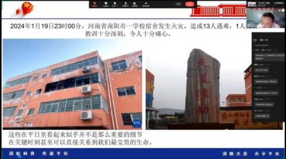 本次培訓(xùn)以線上“云課堂”的形式開(kāi)展,就如何解決消防安全管理工作的重難點(diǎn)和落實(shí)消防安全主體責(zé)任制進(jìn)行了講解,并詳細(xì)闡述了三級(jí)防火責(zé)任制、安全管理責(zé)任人、“三管三必須”等內(nèi)容,進(jìn)一步明確了安全管理思路,壓實(shí)了各級(jí)各崗位安全責(zé)任。通過(guò)分析近期發(fā)生的典型火災(zāi)安全事故案例,對(duì)火災(zāi)容易發(fā)生的部位、如何預(yù)防火災(zāi)、火災(zāi)中如何逃生自救等內(nèi)容進(jìn)行了重點(diǎn)講解,注意用電、燃?xì)獍踩?/span>規(guī)范停車(chē)充電、暢通生命通道,增強(qiáng)全體員工在工作和生活中的消防意識(shí)。