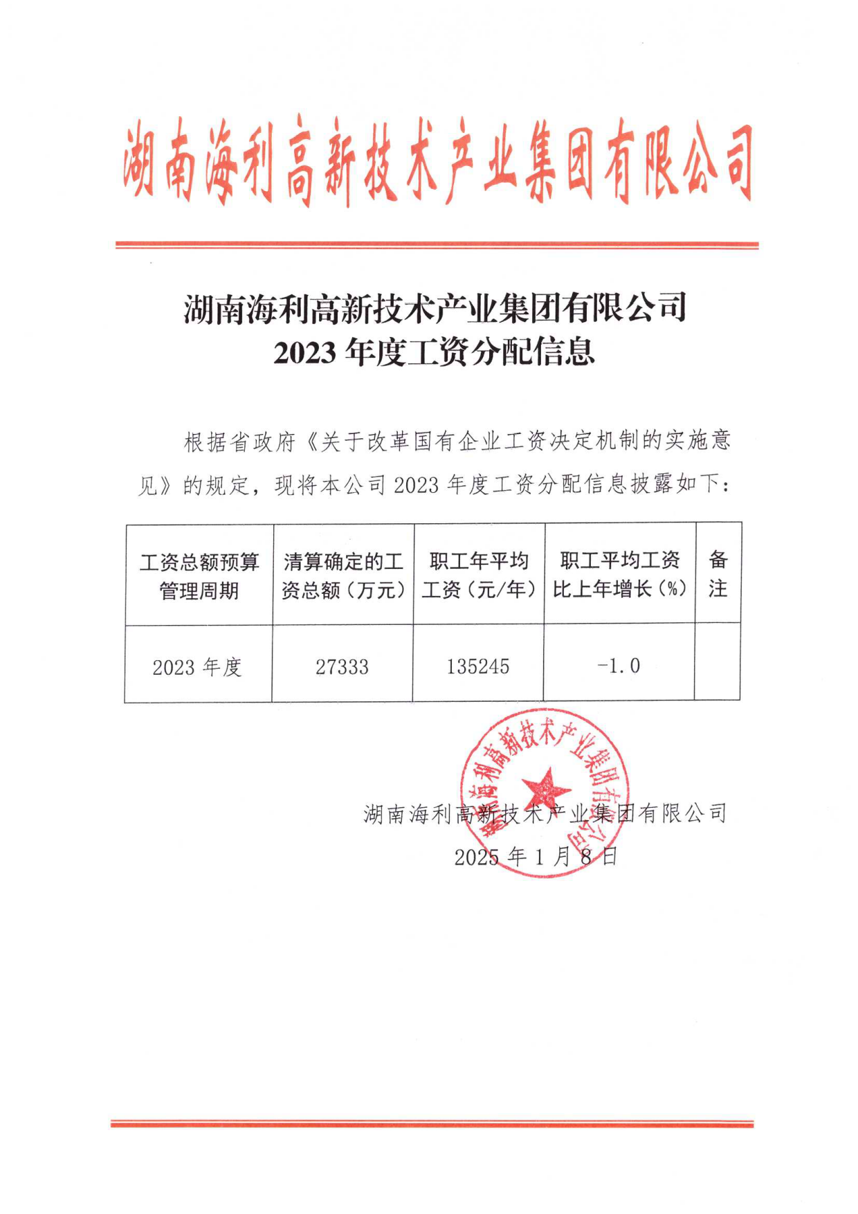 湖南海利高新技術(shù)產(chǎn)業(yè)集團有限公司2023年度工資分配信息